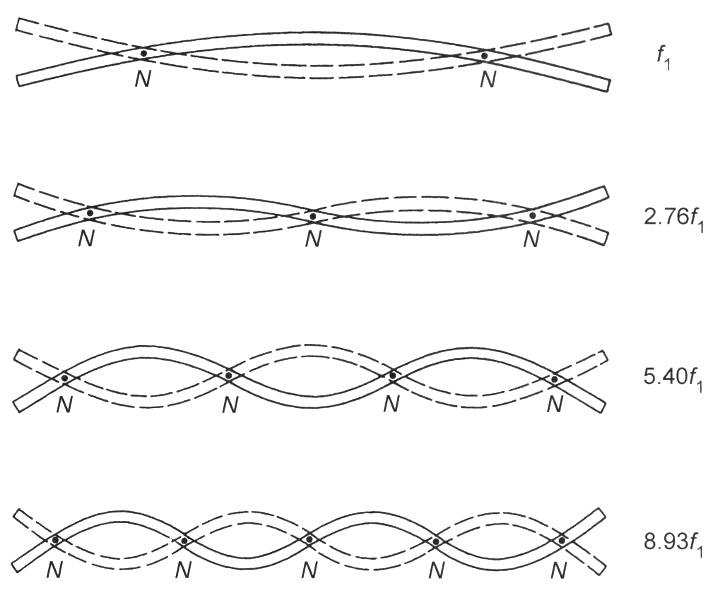 cuatro primeros modos de vibración de una barra de sección rectangular