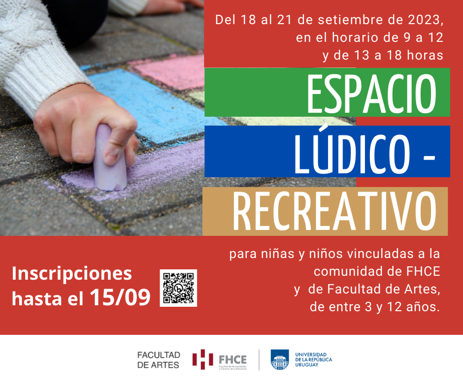 Del 18 al 21 de setiembre de 2023 vuelve el espacio de recreación para que niños/as de entre 3 y 12 años -a cargo de personal docente, TAS, tercerizado y estudiantes tanto de la Facultad de Artes como de la Facultad de Humanidades y Ciencias de la Educación (FHCE)- puedan realizar actividades recreativas mientras sus referentes estudian o trabajan. El plazo de inscripciones es hasta el 15 de setiembre.